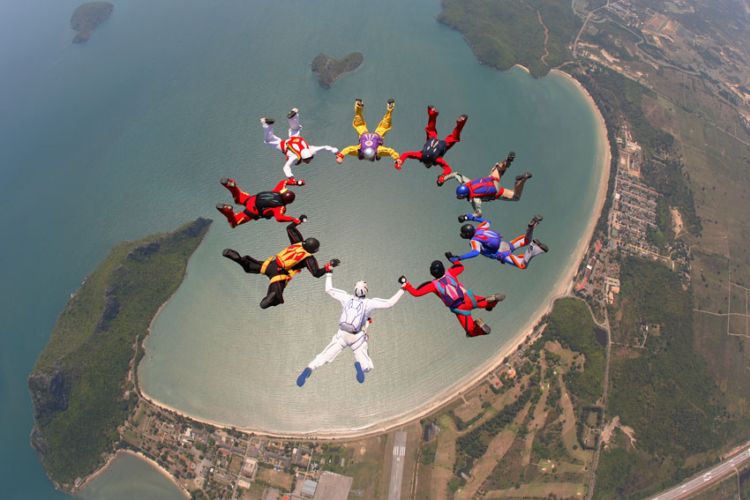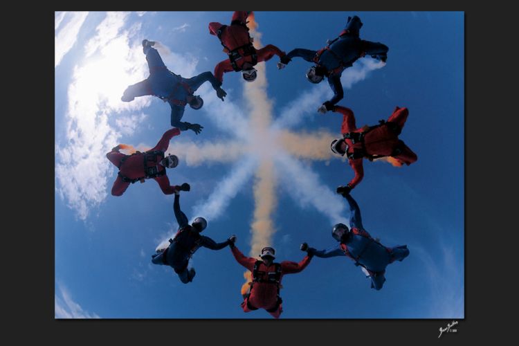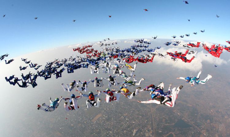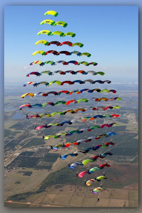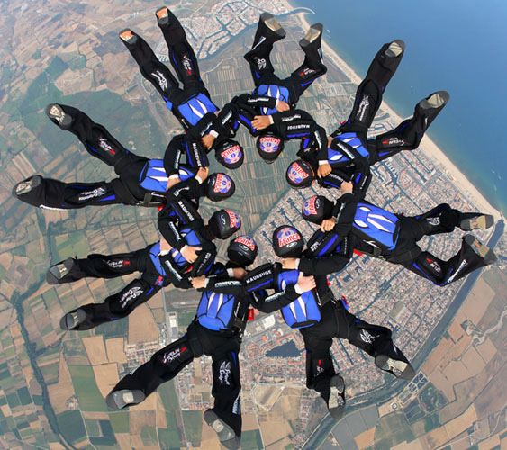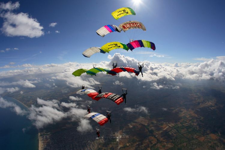 те фотки, где народ вплотную друх к другу летит - они савсем йобнулись??? ониж куполами друг дружку касаются. не дай бог ветерок, или сам кто облажается - это ж блять ани всей массой расхуякаюца апземлю