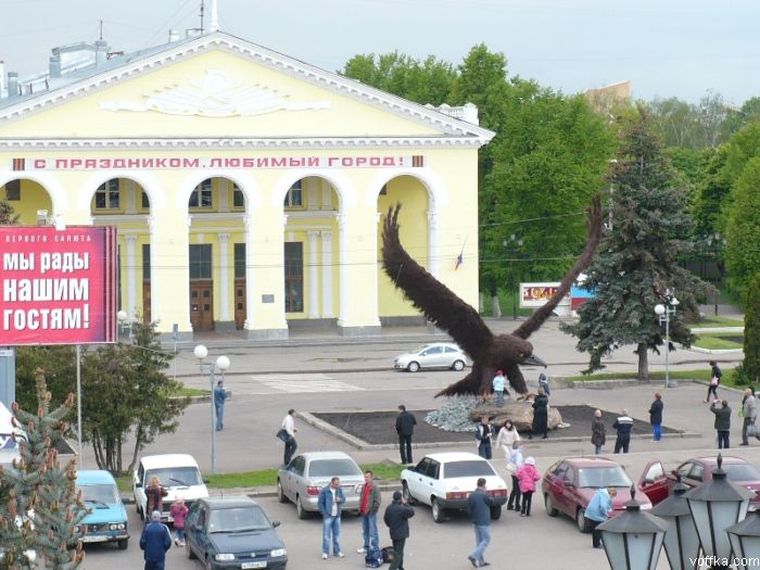Дибилоиды, это чючело через год в облезлую ворону превратиццо. Зоказали бы лучше какому нибуть местному Цырители памятнег из камня таково-же размера.