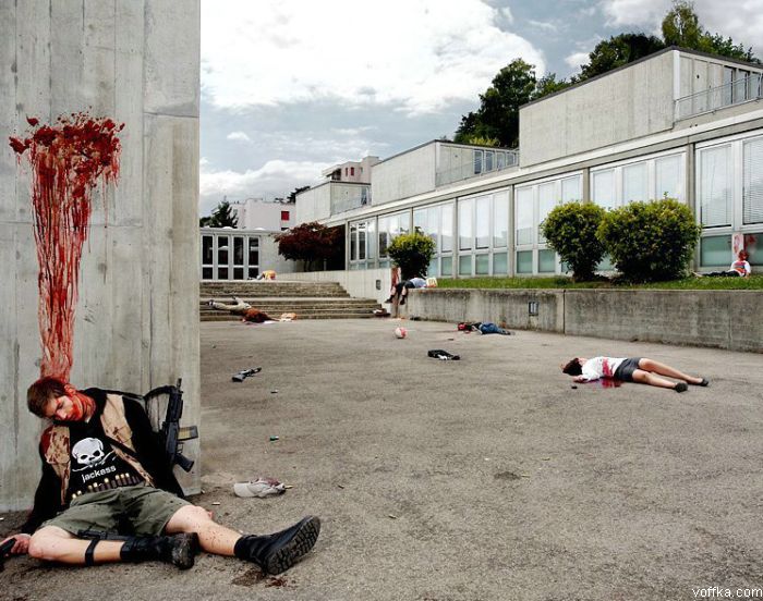 видно что все это делали пресловутые дизайнеры которые никуя не смыслят в реальном, ни кровь ни баллистика - нарисовано неправильно