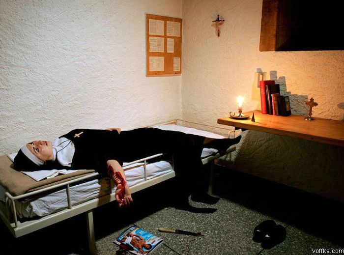 Столько стреляли и все стекла целые...монашка артистка бездарная... зачем на колючку залезла, если рядом калитка без колючки... Автору(ам) лечиться немедленно...