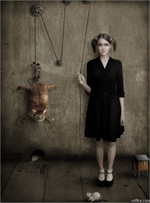 ооо!!! понравилось. особенно белый кролик в ошейничке и рыжий кот, подвешенный за хвост )))