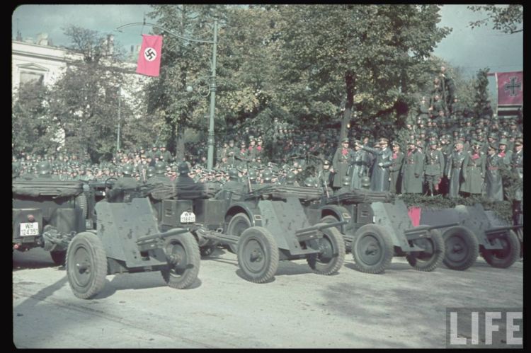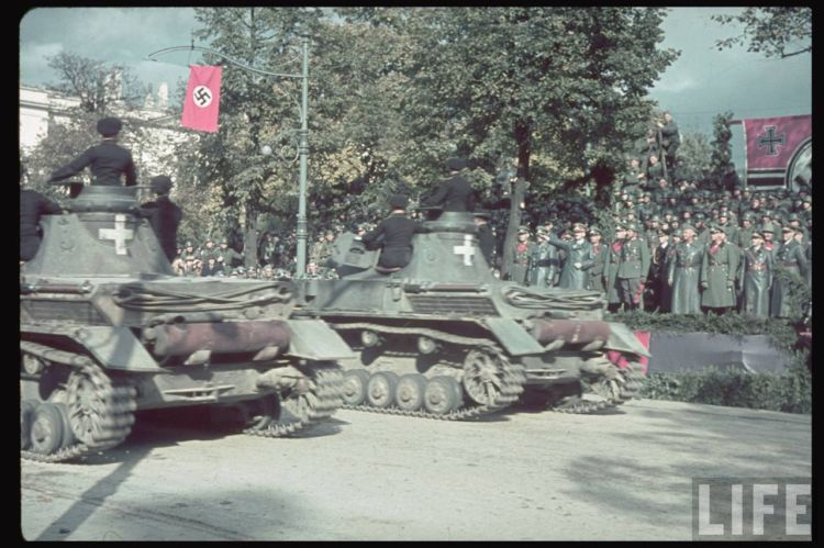 Особый интерес вызывают немецкие танки Pz-3 на параде. Основные танки фрицев в 41-м году. Как они на таких малышах до Москвы дошли???