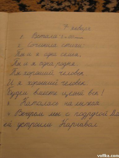 такине дневники у многих детей есть. просто папа этой девочки дебил с большой буквы раз такие вещи в интернете постит. может этот папа голые фотки еще где нибудь выставляет своей дочери. дрочер он. вот кто. А ты вован еще раз доказал, что ничуть не хуже этого папаши.