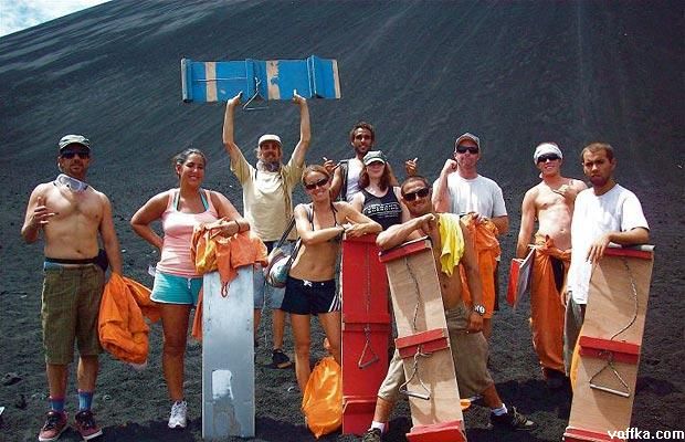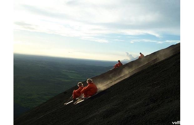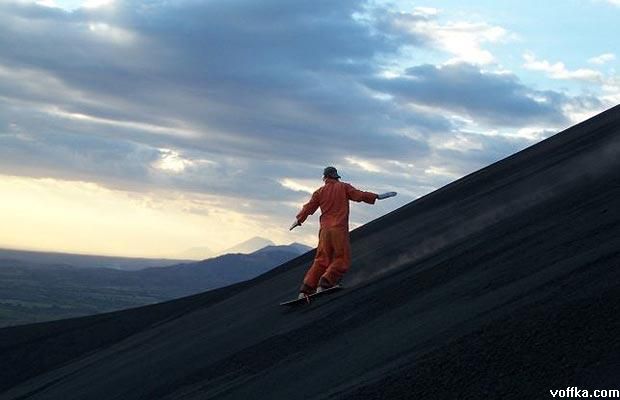Серфинга на вулканической пыли в Никарагуа.