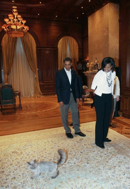 Потом семью Обама познакомили с Дорофеем. Ряд сторонников конспирологических теорий поговаривают, что Дорофей и есть настоящий президент России.