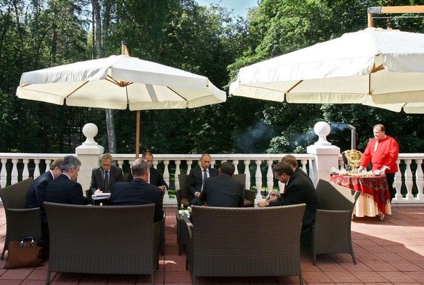 Потом поехали к Володьке. Еще перед приездом Барака в Москву, американский президент выдвинул тезис, де Дима как бы хороший, а Володя как бы плохой.