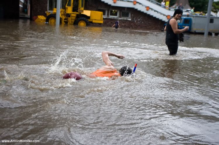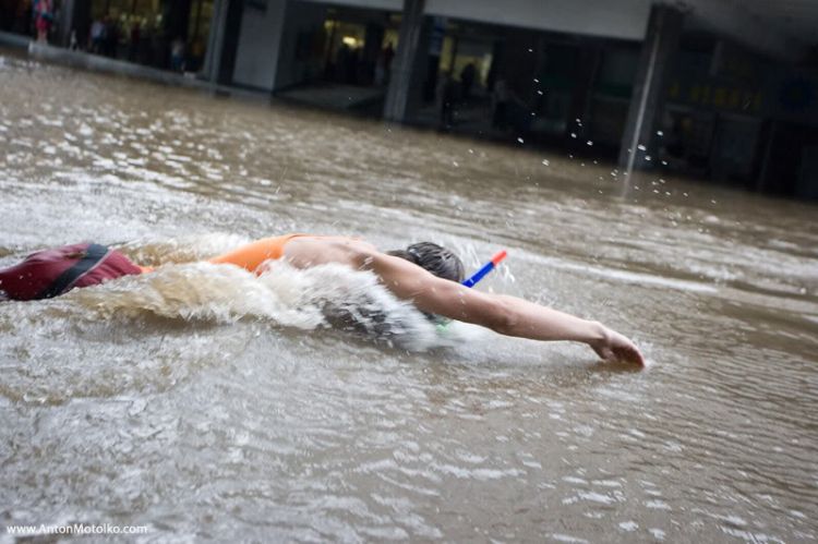 это еще хуйня, местами в человеческий рост воды было, видел над водой одна голова двигалась, оказалось велосипедист, местами народ на водных скуторах ездил, уж хз где они их взяли,