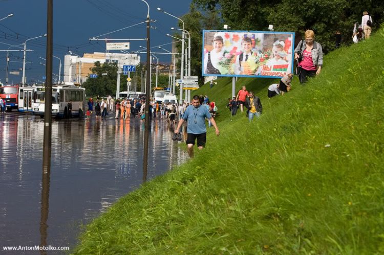 Бля... Там же всё гавно из канализации на улицах повсплывало... Минск - столица плавающих какашек!