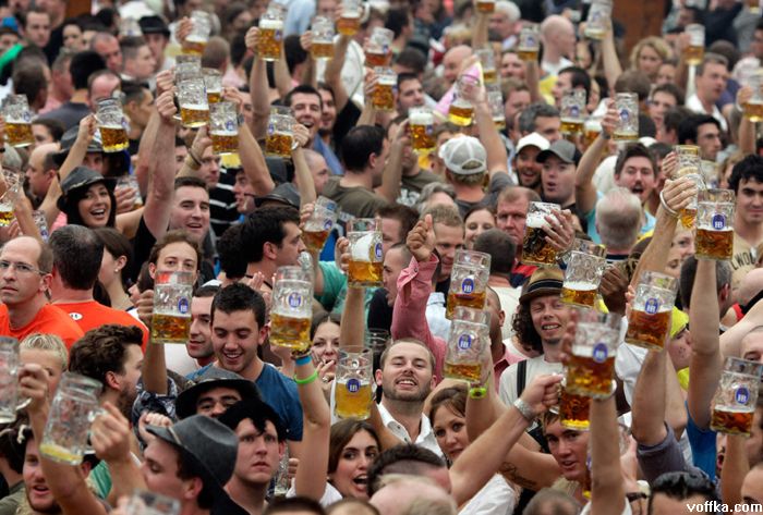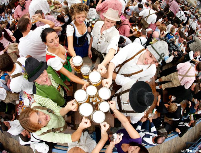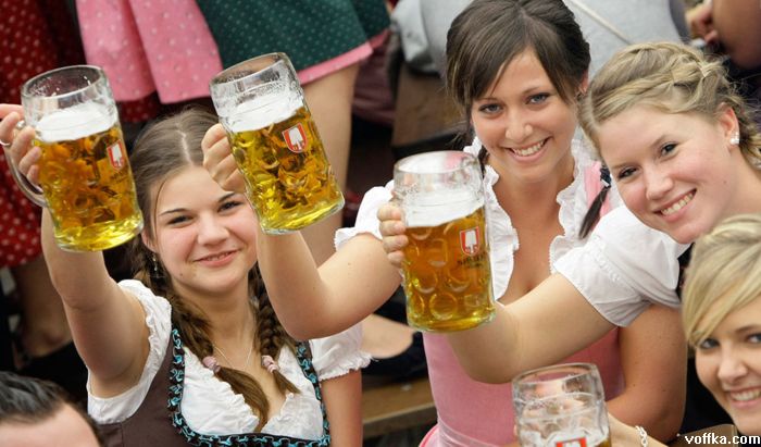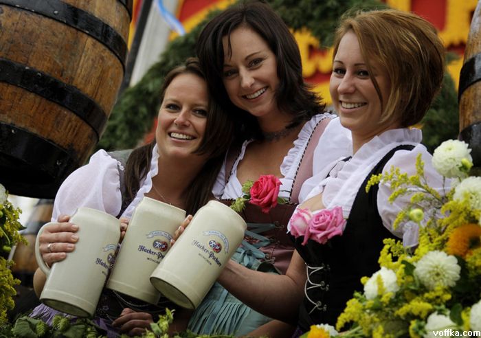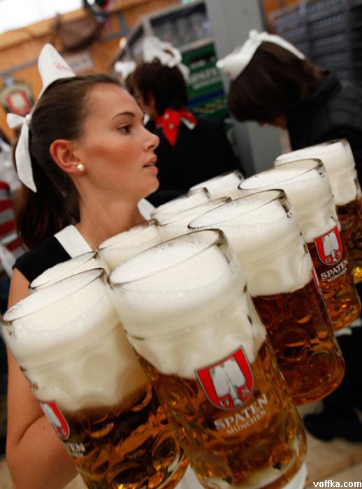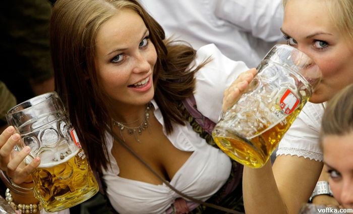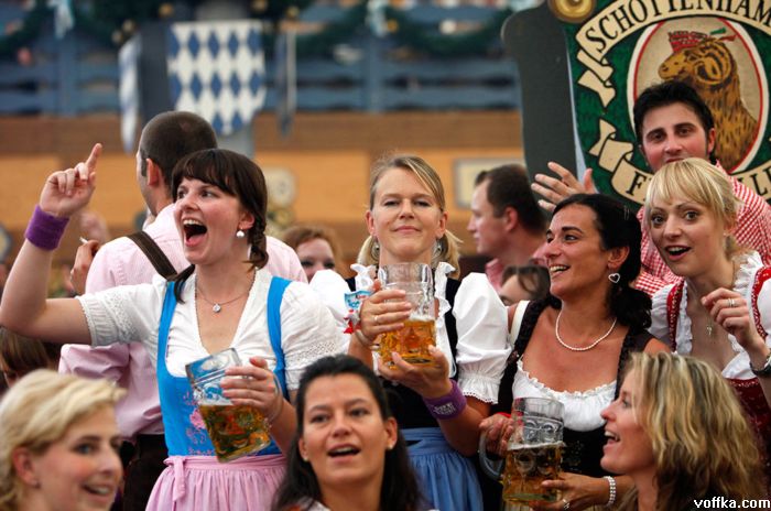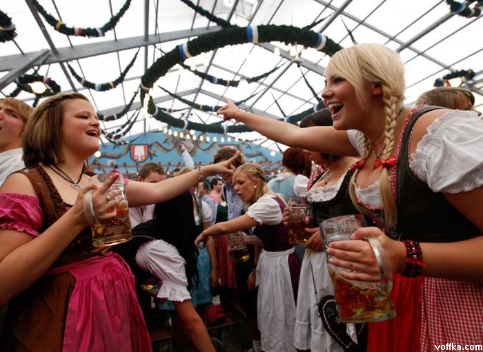кроме разнощиц пива дастойных тётак нету а эти на работе тоесть неибуцца а это не есть хорошо. кстати на фоте где все паднимают бокалы чёта у каждого адинаково отпито. фрицы бухают по каманде?