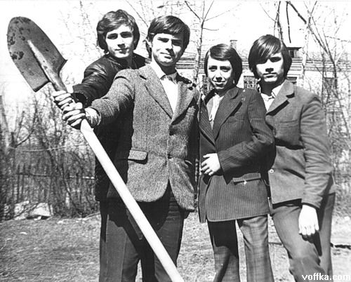 совковово тут тока форма школьная, Гагарин,автомат газ воды и ленин ну еще пара причесок с усами.