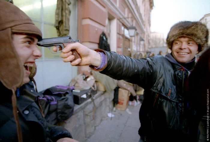 В стране разрешена продажа газового оружия. Москва, Арбат, ноябрь 1992 г.