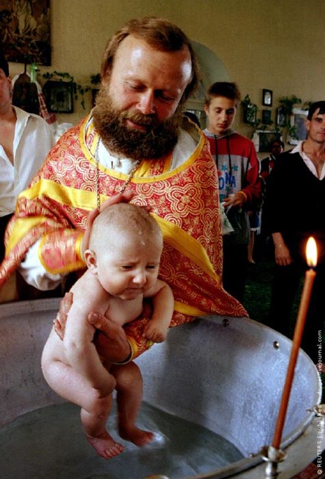 Обряд крещения в церкви. Рязань, июнь 1994 г.