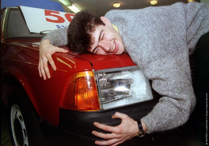 Выигравший в лотерею автомашину "Москвич". Ноябрь 1994 г.