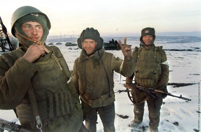 Российские солдаты на позиции недалеко от границы с Чечней. Декабрь 1994 г.