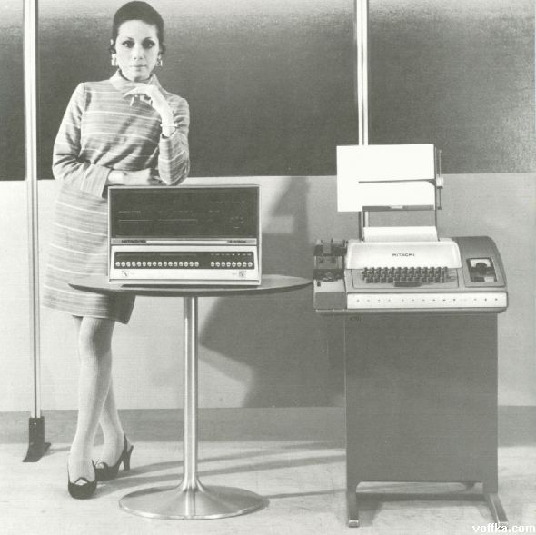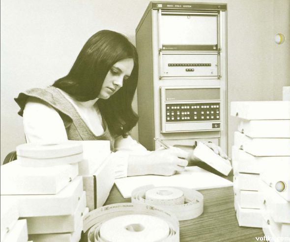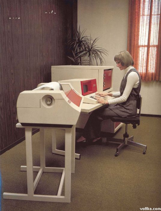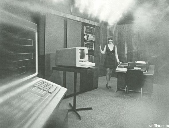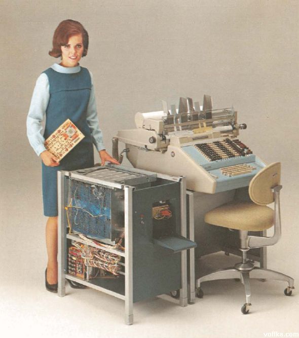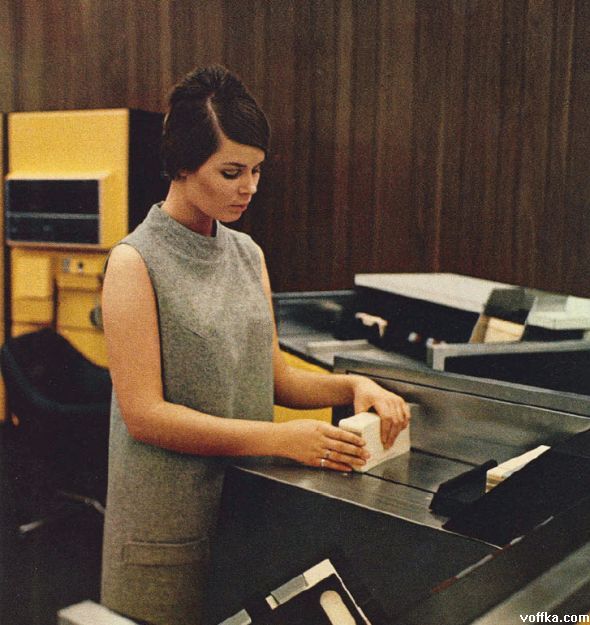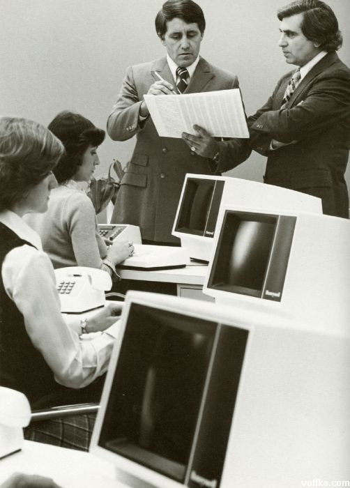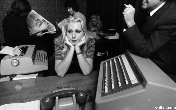 О! А я одно время даже работал с телетайпом, навроде предшественника электронной почты. Судя по причёскам, 70-е гг.