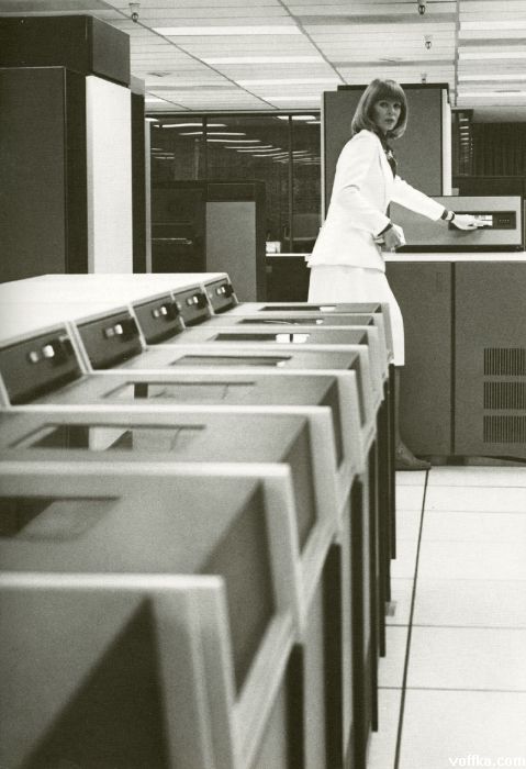 70e... как трогательно! перфолента еще, ни БОСа, ни ПДО, перфокарты подписывать... Электроника с золочеными контактами, все такое красивое, искрящееся. Обязательно фальшпол из алюминиевых плит и гермозона за стеклом. Война с пылью - белые халаты.
