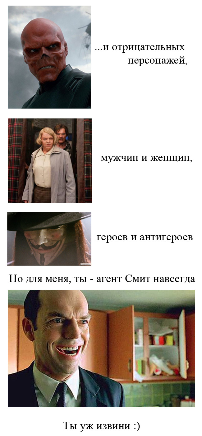 "Анон" писал:Ну почему же. Агент смит - классический пример мудака без маски.