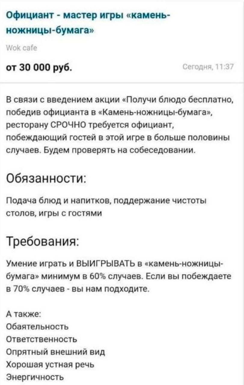 Нанял опытного человека, зарплата 100к. А потом передумал... Заказов не много. Давай, говорит, пока 50к буду платить? Опытный послал его куда подальше и ушел.